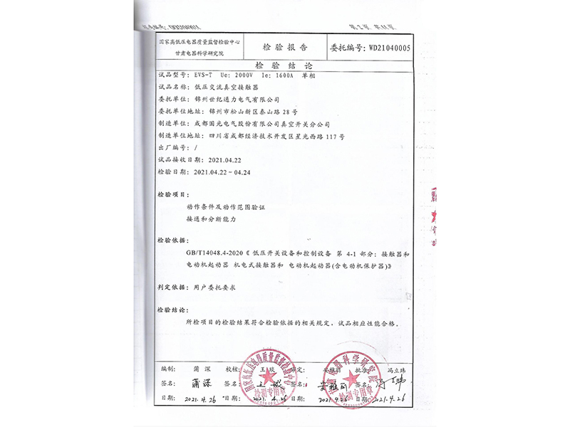 報(bào)告礦熱爐低壓無功補(bǔ)償專用真空接觸器型式試驗(yàn)報(bào)告